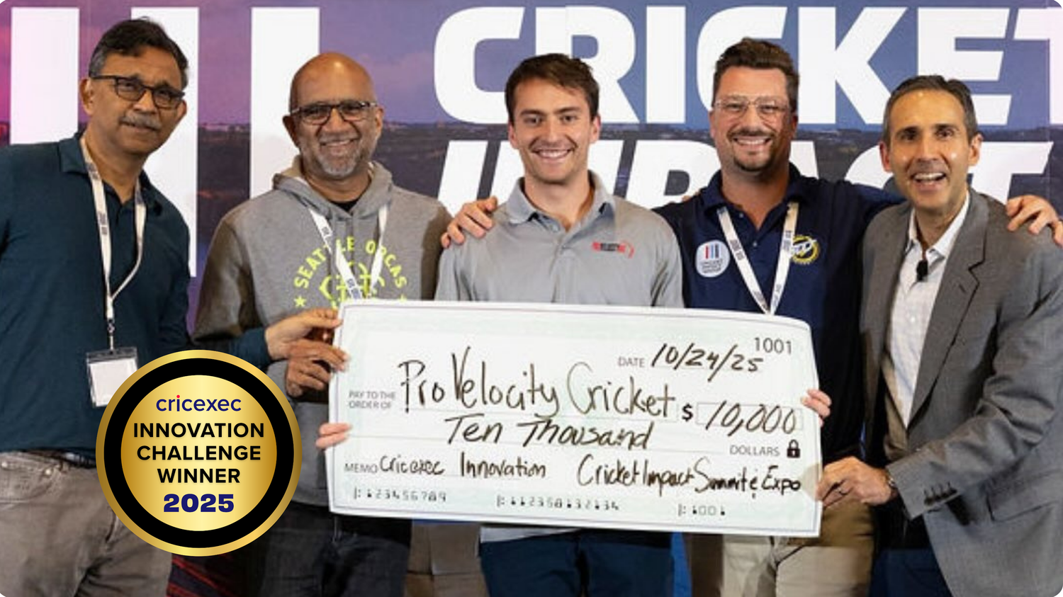 ProVelocity Cricket won Cricexec’s first Innovation Challenge after a 10-min finalist pitch, earning a $10,000 ad campaign and bragging rights.